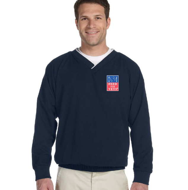 Microfiber Wind Shirt with embroidered FEED OUR VETS® logo on left chest. Navy with white trim. Mens sizes S-3X.