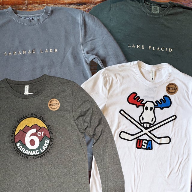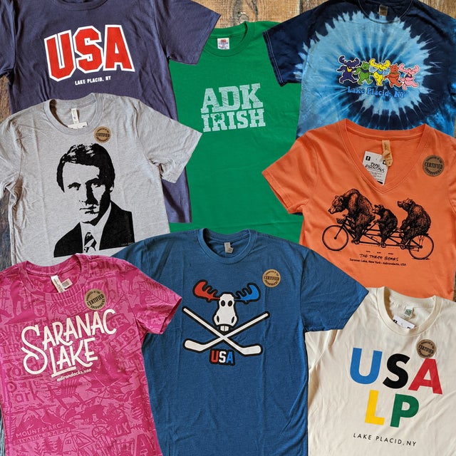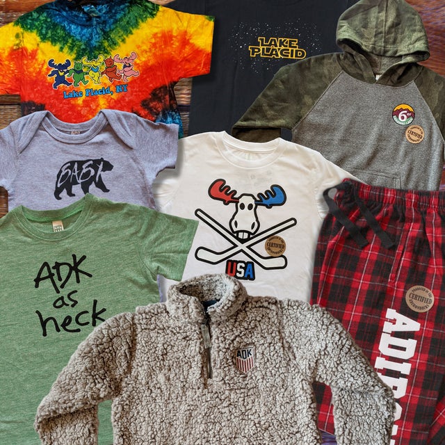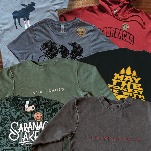 Shop our collection of locally produced Bear Essentials Apparel featuring Adirondack, Lake Placid and Saranac Lake designs.